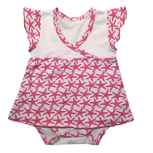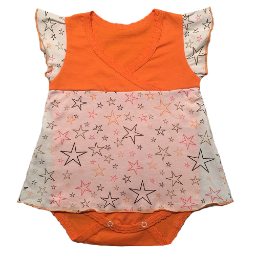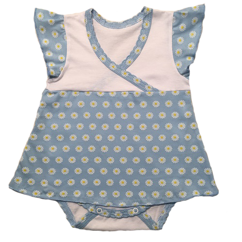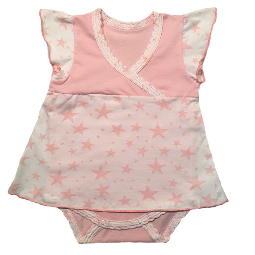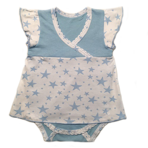 Боди-платье с рукавчиками крылышками, на кокетке, снизу на кнопочках.