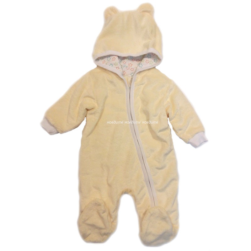 Комбинезон с капюшоном декорированный ушками, с закрытыми ножками, с рукавчиками на манжетиках, спереди на молнии до конца одной ножки.