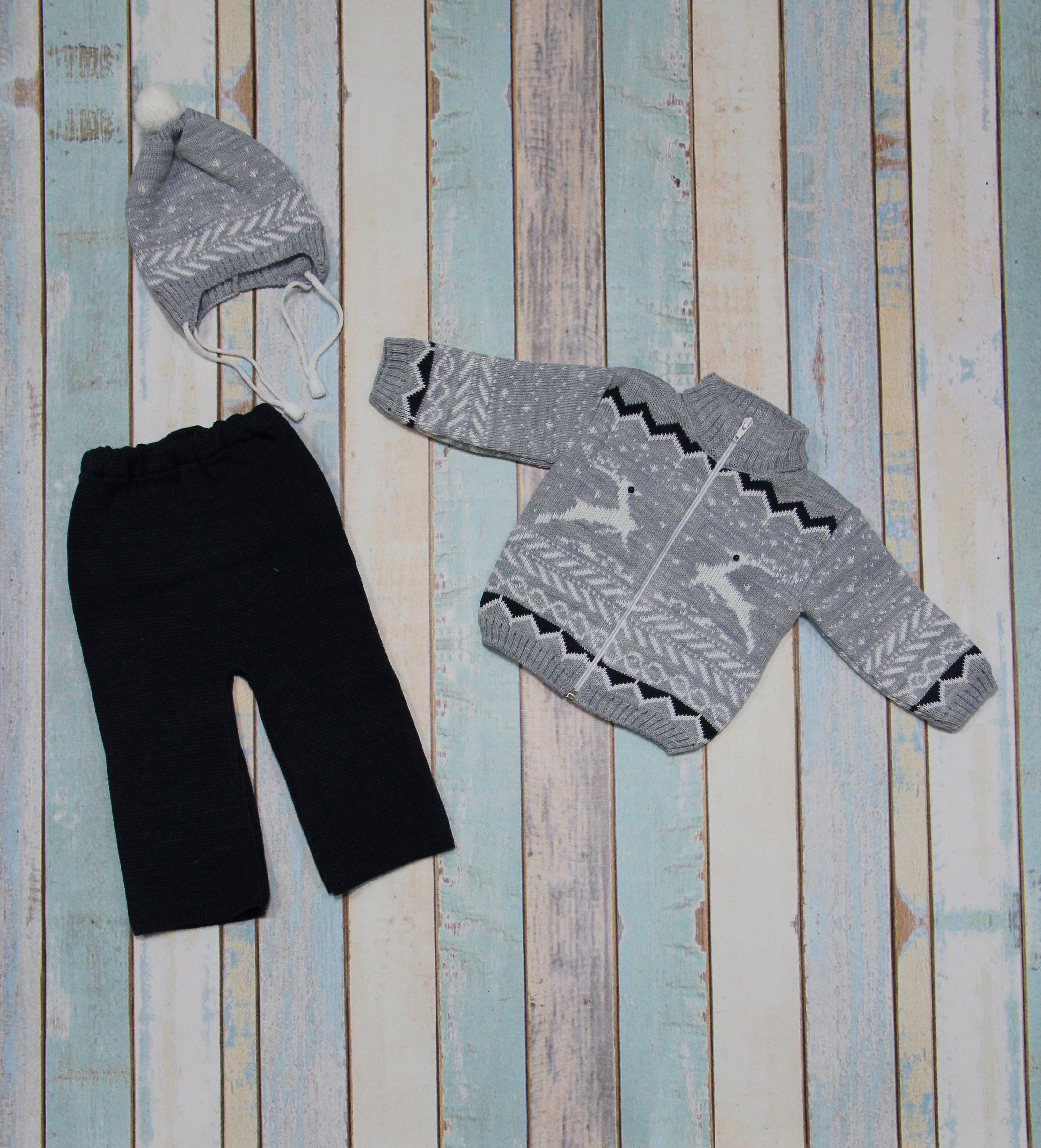 "МоёДитё" костюм из 3-х предметов "Олени" серый "Лотос" в Прокопьевске